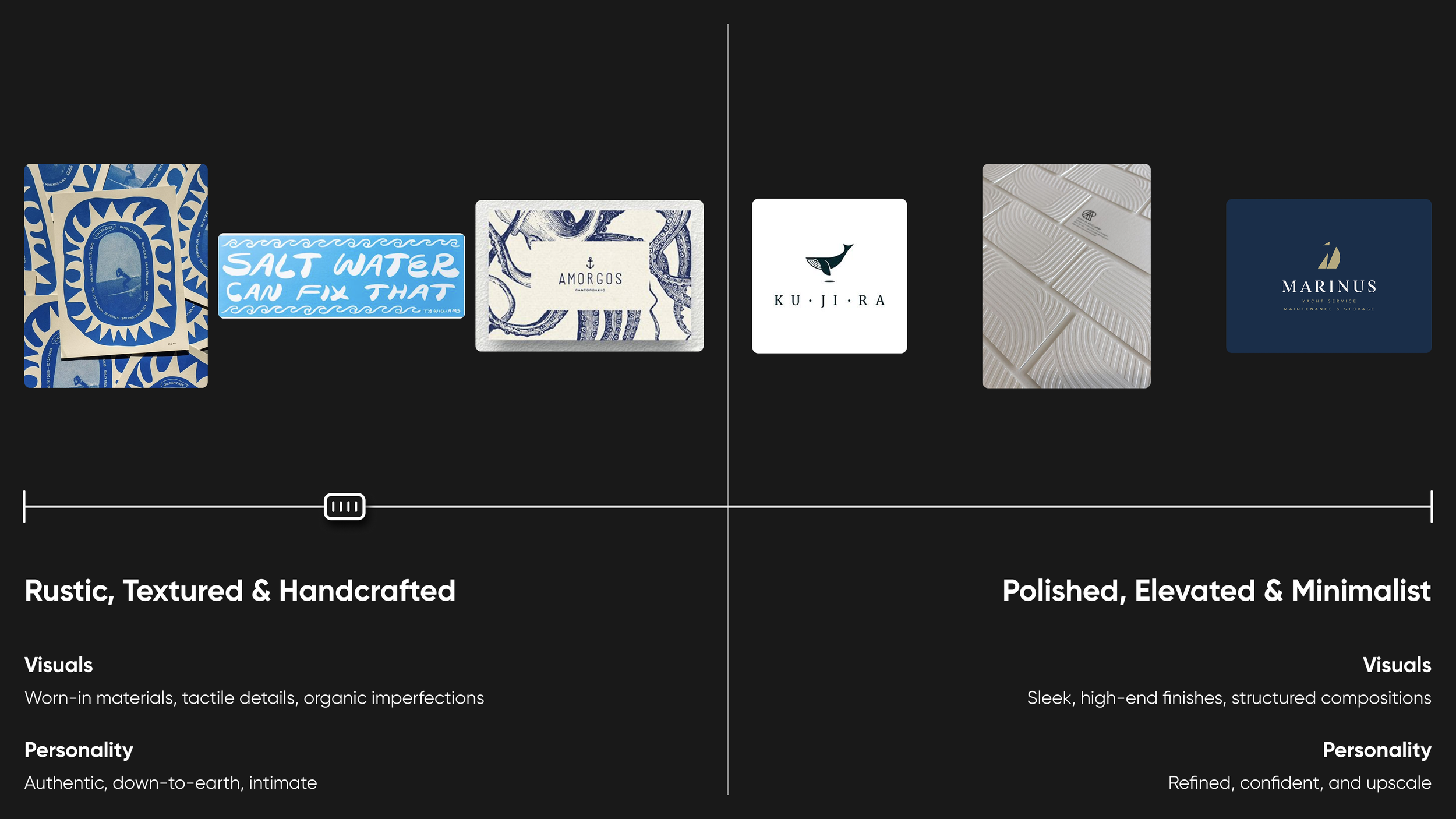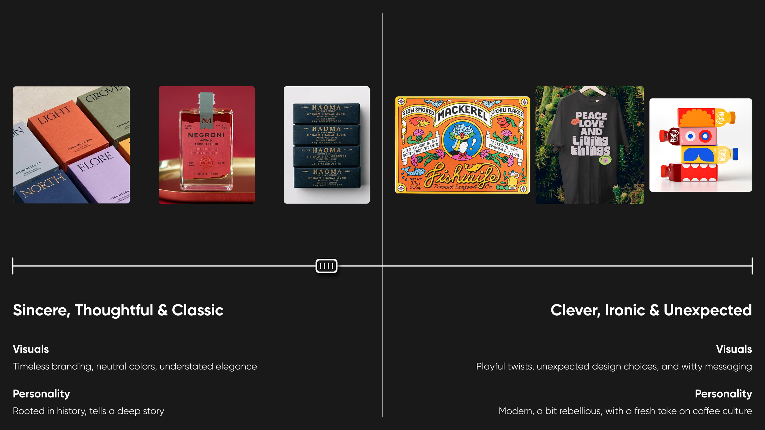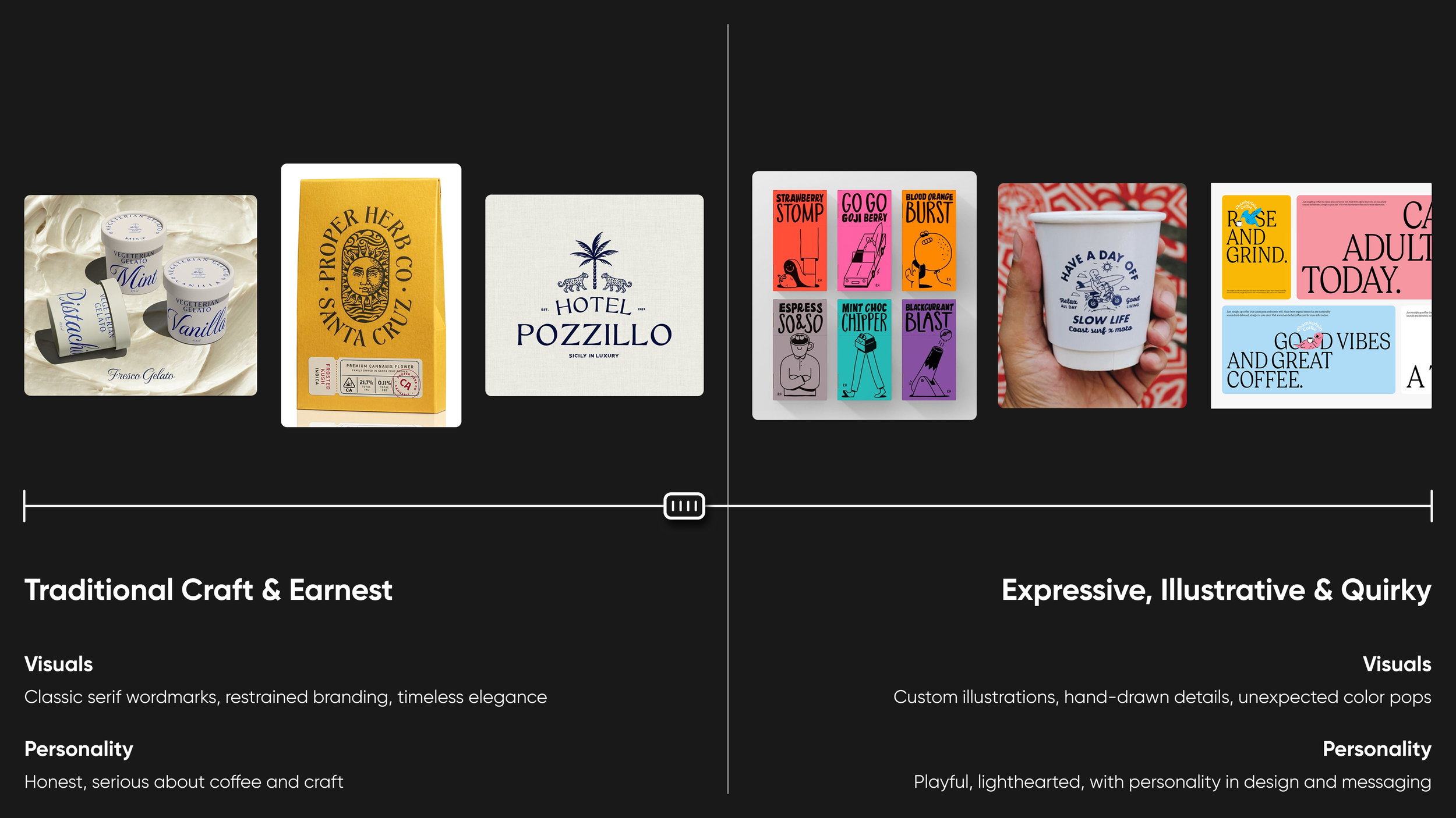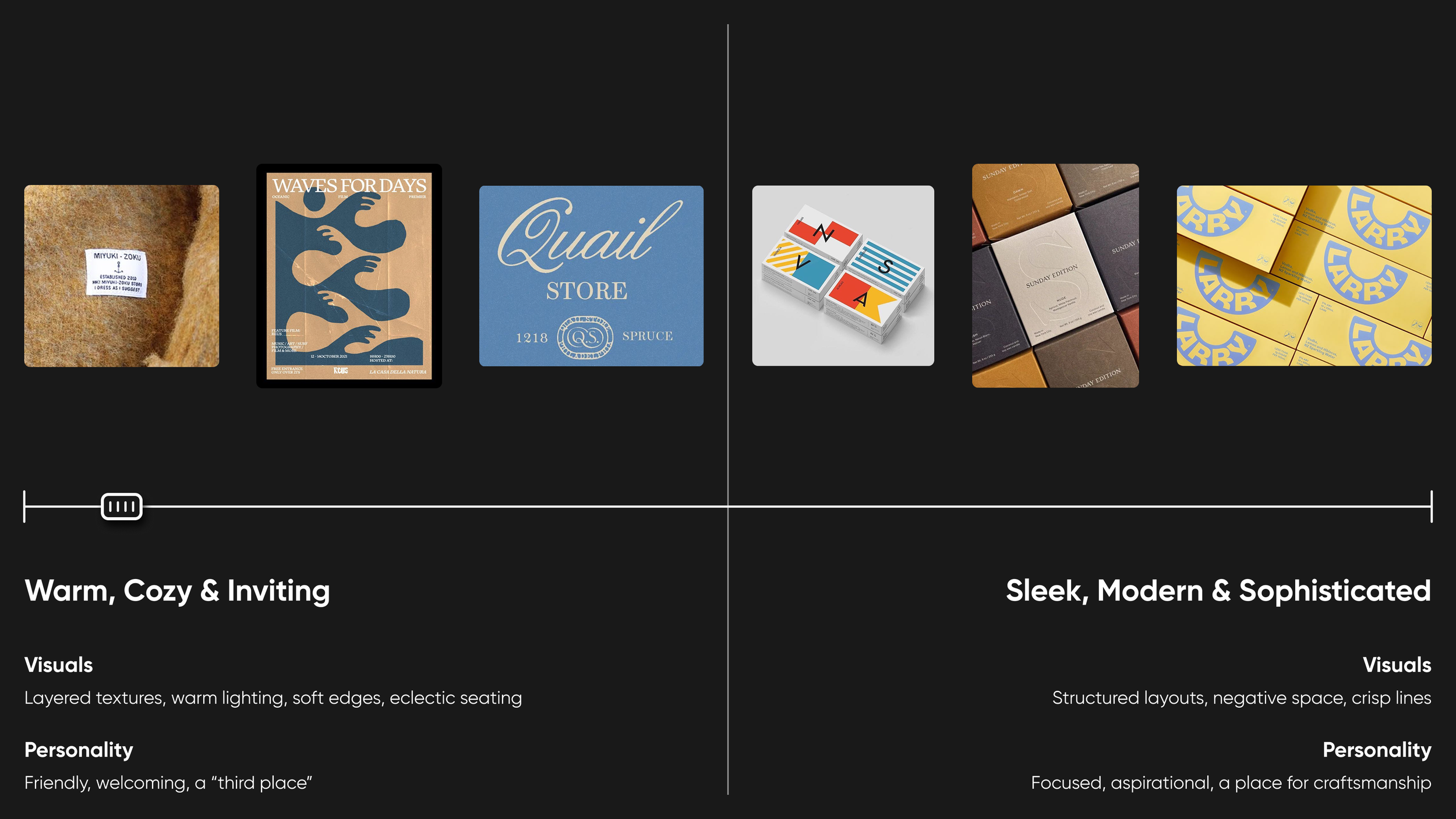 We used a tried-and-true methodology to create the brand, although sped up a bit to meet the client’s timeline. First we created a set of sliding scales to better understand who they are and, for lack of a better term, their vibe. Once we had that solidified we put together a set of moodboards to make sure we were all headed in the same general direction (as a bonus we also added in some copy directions and ideas we had for moments of delight).